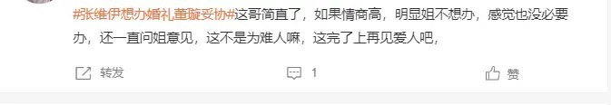 张维伊又是说可以迁就董璇办轻松点的,又是同意不收份子钱,反正就是我想办。